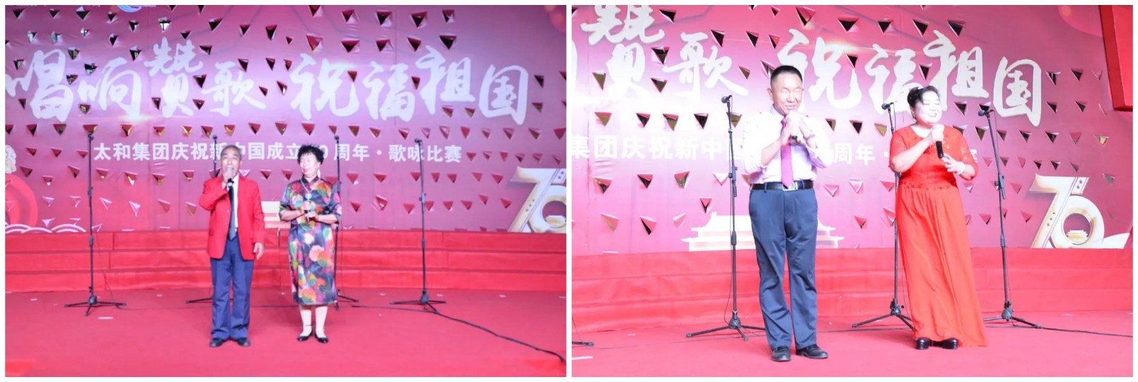 華夏七十歲月秋,山河瑞彩耀神州。為感恩祖國母親,抒發我們的民族榮譽感和愛國自豪感,2019年9月30日晚,華燈初上,夜色闌珊,太和集團慶祝新中國成立70周年歌詠比賽在太和大廈門口熱烈舉行。太和集團商業、地產和金融三大板塊各個企業的員工、商城經銷商、業主等400多人參加了本次比賽活動,用我們的激情唱響心中贊歌,祝福祖國母親70周年華誕,同時也弘揚太和集團企業文化,展現員工熱愛祖國、奮力拼搏、努力進取的精神風貌,增強太和集團品牌的社會影響力。