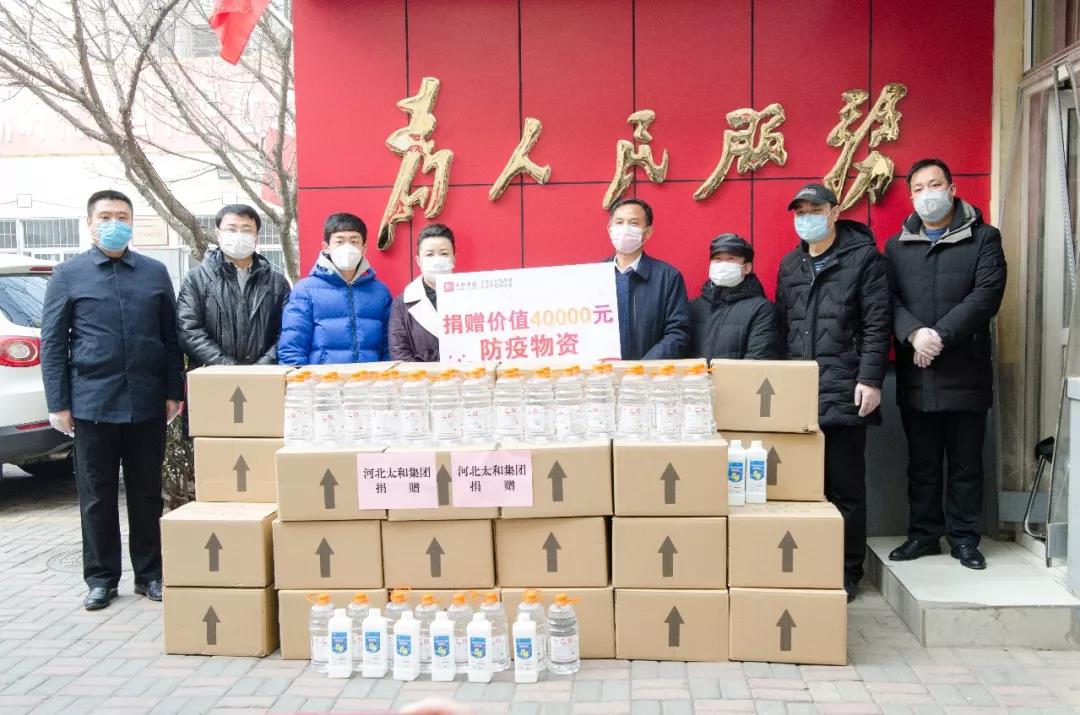 長安區人大常委、中國四會玉器博覽城總經理陳暇,太和文化禮品城常務副總經理尚林,太和百貨日化城常務副總經理國朋軍帶領部分員工代表向阜康街辦事處捐贈了75%酒精36瓶、84消毒液40箱等20000元物資及現金20000元,以實際行動全力支持抗擊新型冠狀病毒感染的肺炎疫情防控工作。