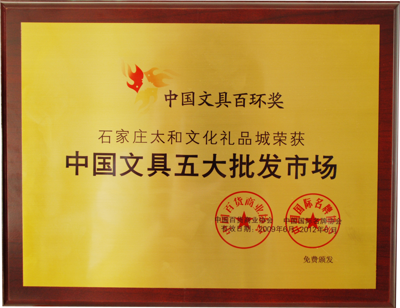 太和文化禮品城榮獲 中國禮品市場示范商城